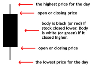 A price chart that displays the low, high, open, and close for a security each day over a specified period of time.